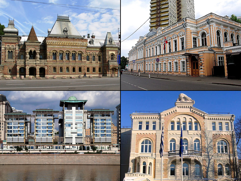 Посольства иностранных государств любят отхватывать себе прикольные здания в самом центре города. Двигаясь от Франции к Греции, через США в сторону Нигерии, можно совершить небольшое путешествие по миру, не выходя из центра Москвы, и параллельно насладиться этими необычными и часто очень даже историческими постройками.
